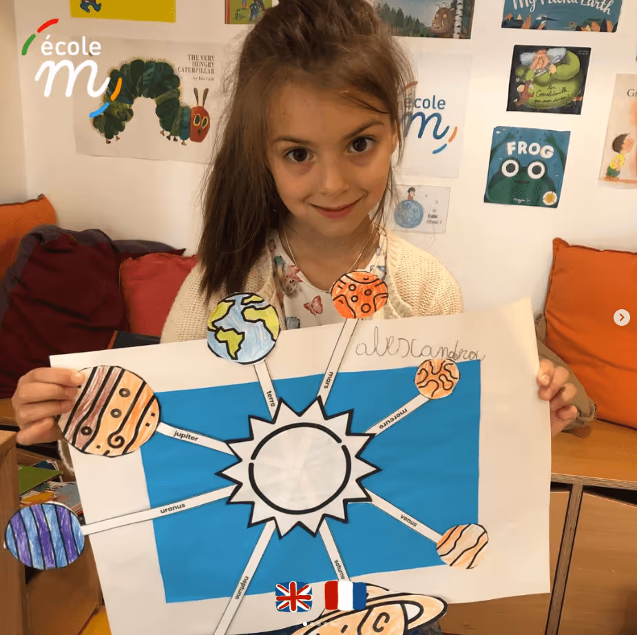 École M is a private, secular preschool that follows the French Education Nationale curriculum and offers bilingual French-English teaching.